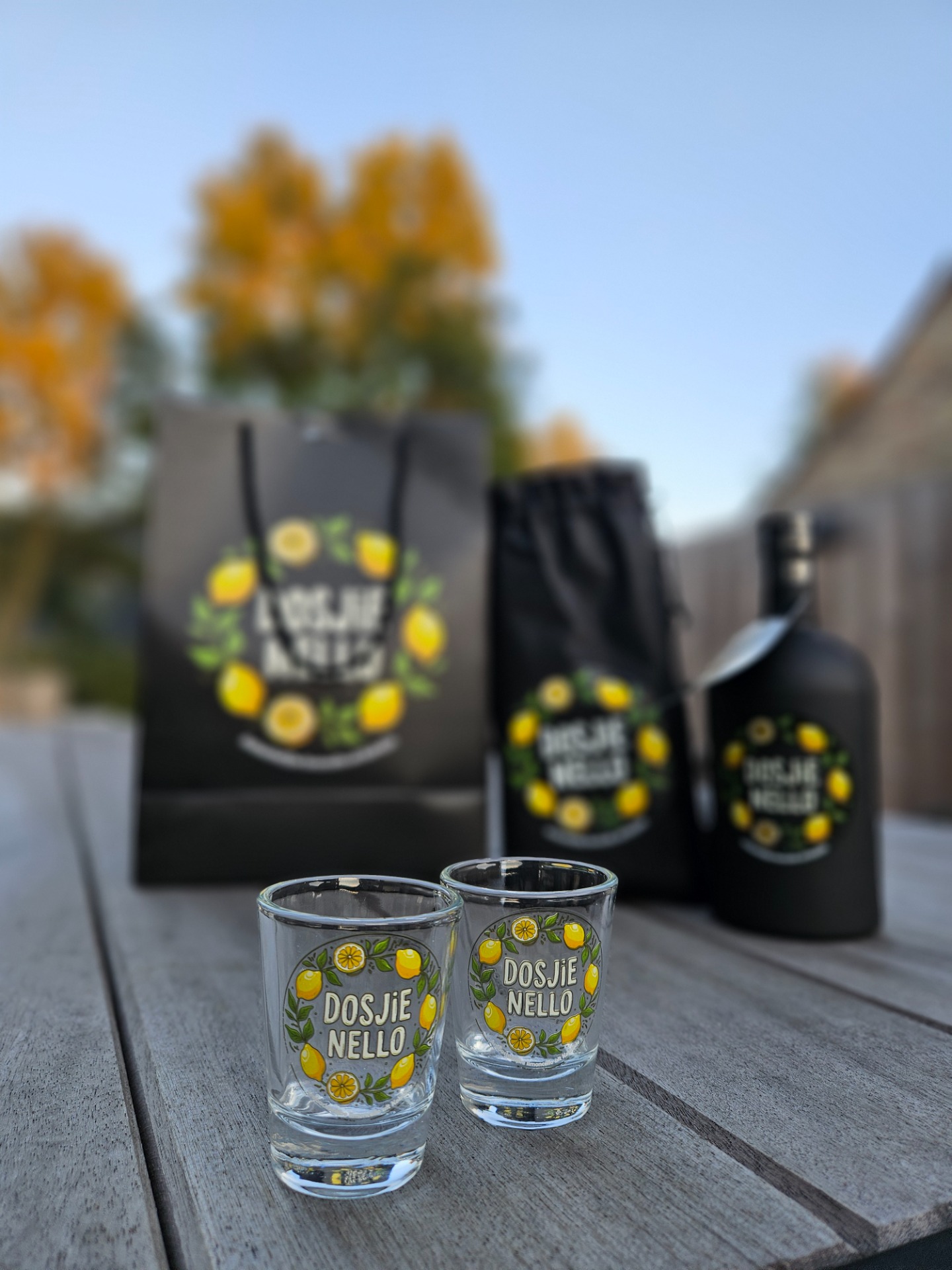 Verras iemand (of jezelf) met dit feestelijke Dosjie-Nello cadeaupakket! Bevat een kleine fles van 50cl, twee shotglazen en een luxe cadeauzak. Klaar om te geven – of om zelf van te genieten in stijl.