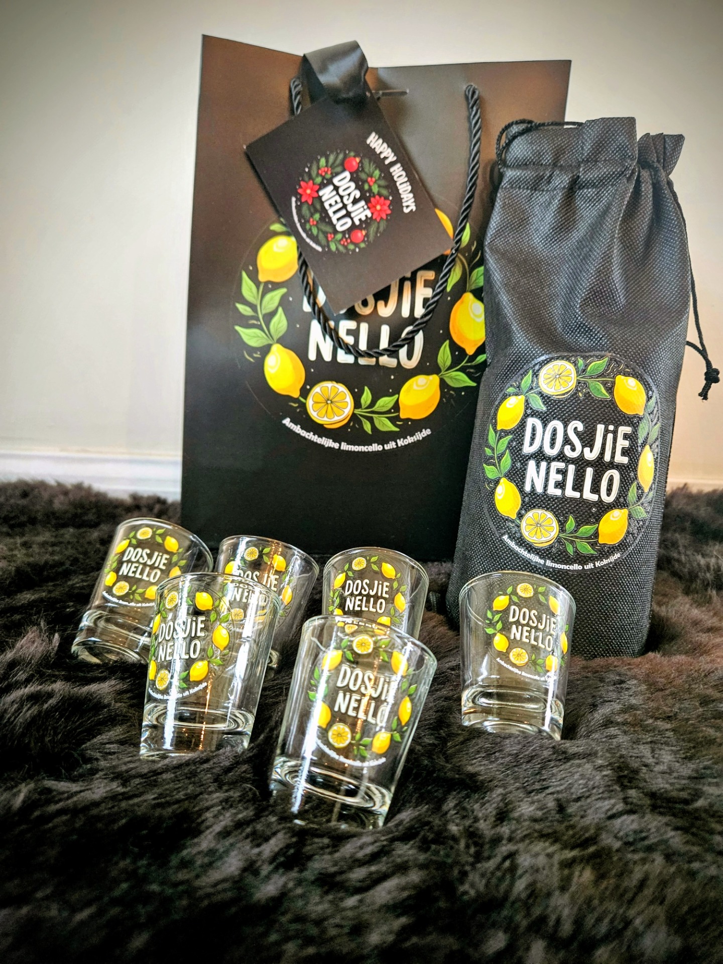 Kerstpakket – Dosjie-Nello 75cl inclusief 6 shotglazen